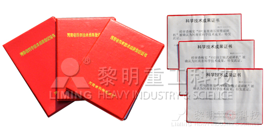 2012年10月,黎明重工科技產品系列再創佳績,經河南省科技廳專家評審,HPC液壓圓錐破、VSI離心沖擊破和歐版顎式破碎機榮獲科技成果證書。